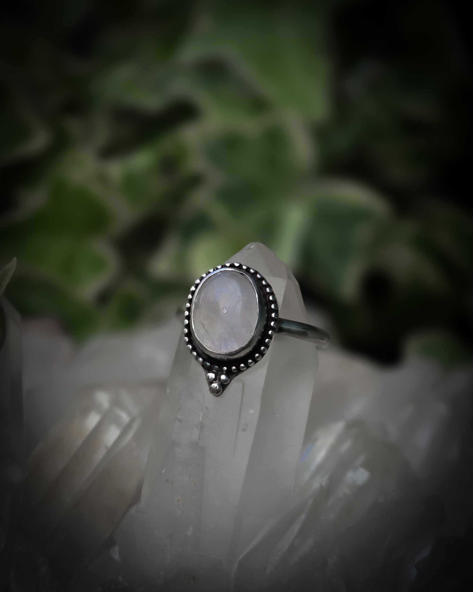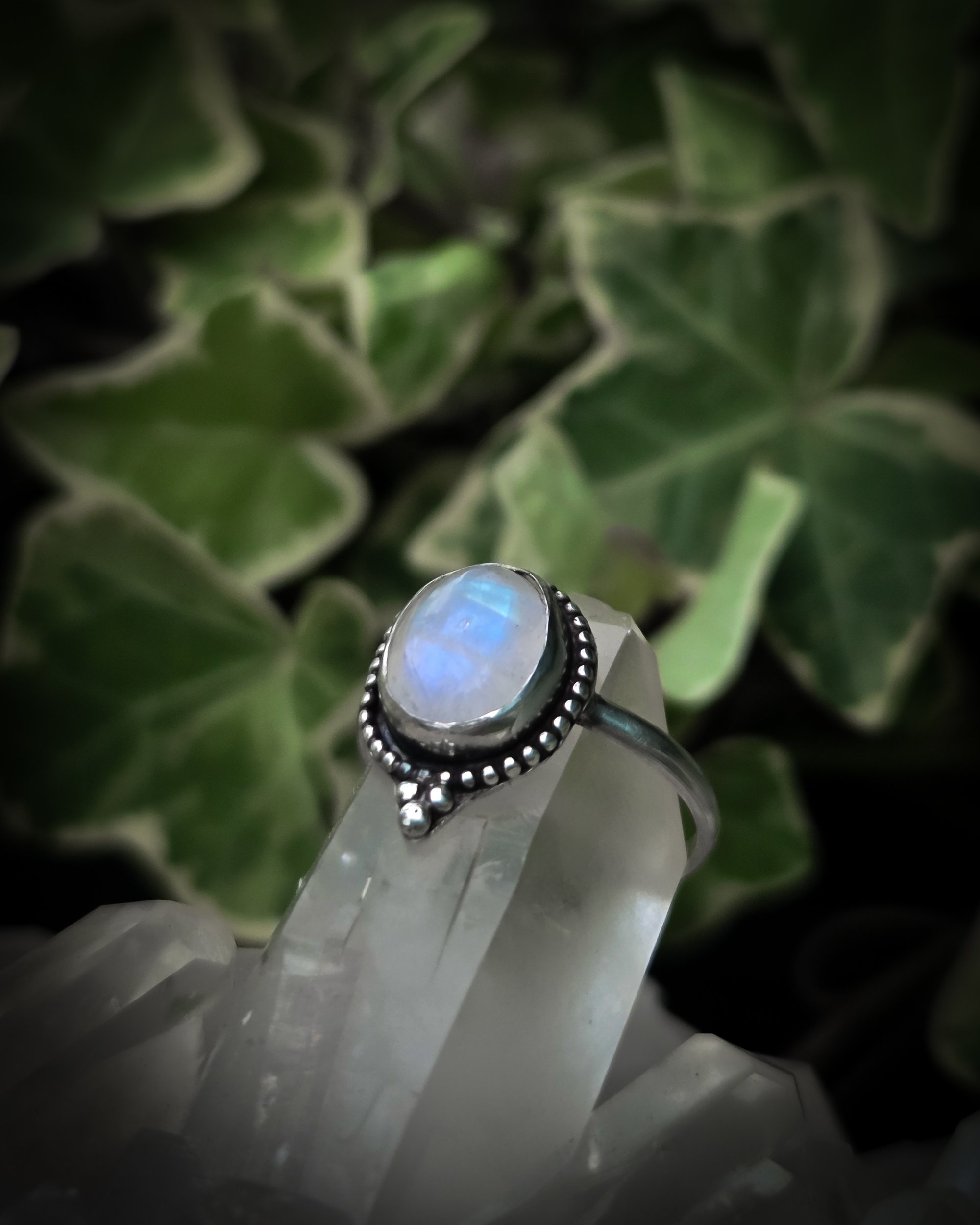 Sterling silver ring with moonstone gem
